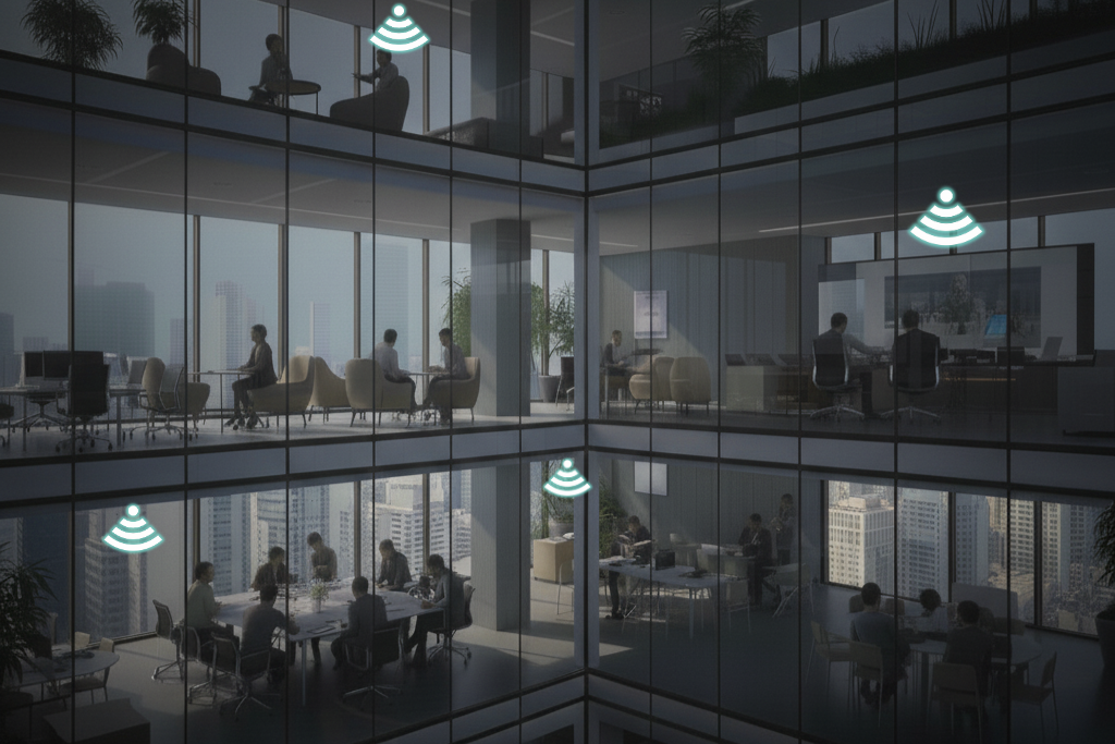 If your office footprint is very large, you most likely can benefit from a Wi-Fi booster to ensure that your signal reaches every corner of your workspace. This includes meeting rooms, flex spaces, or even outside areas where employees may gather.